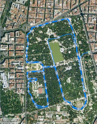 DOMINGO: 28 Kms @ 5´41´´ - 135 puls, 2 h 39´ ( en el Retiro )